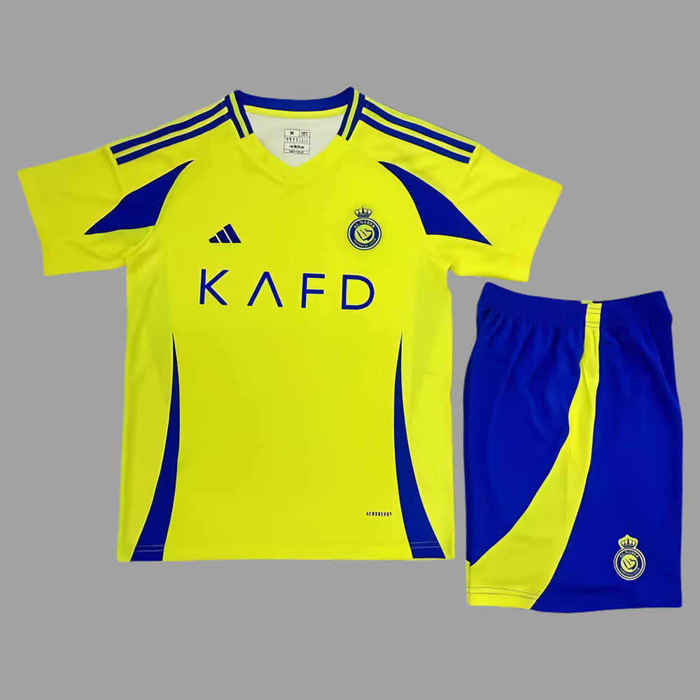 Fă-i să se simtă ca și cum ar merge pe câmp cu tricoul Al-Nassr FC galben, conceput special pentru copii. Alege tricoul de casă pentru sezonul 2024-2025 și îmbogățiți-i fanatismul!