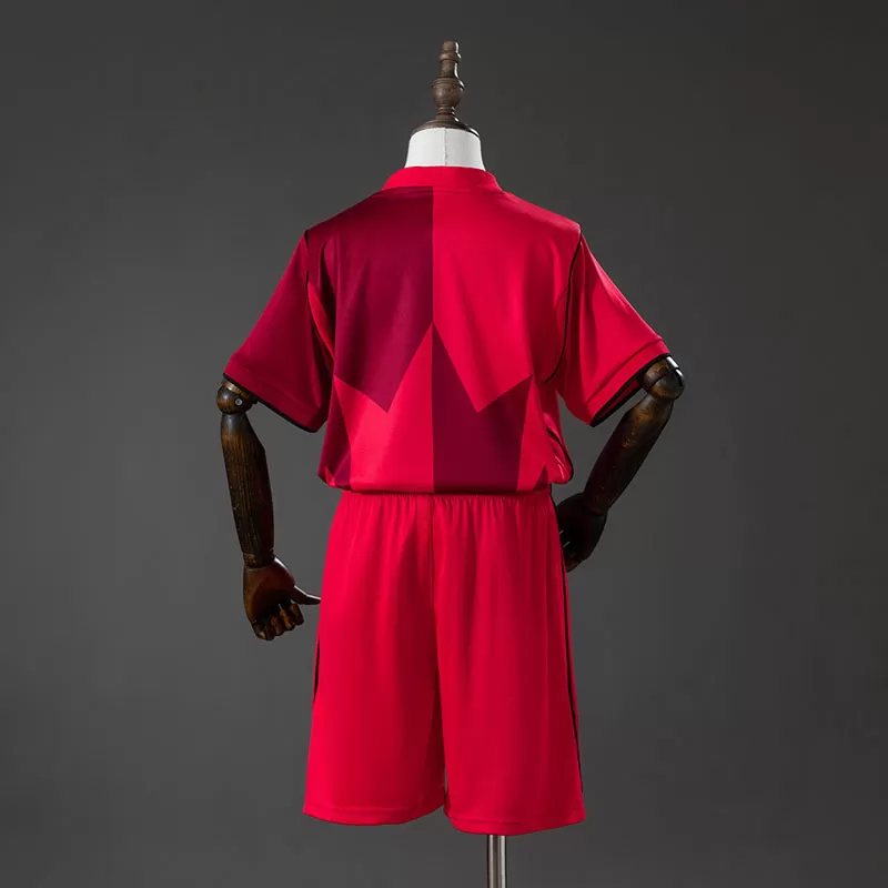 Alege noul echipament copii Canada 2026 acasă – tricou fotbal + pantaloni scurți, creat special pentru micii suporteri care iubesc fotbalul și atmosfera Cupei Mondiale 2026. Acest set fotbal copii Canada 2026 impresionează prin designul său modern în nuanță roșie intensă, completat de un model discret cu frunză de arțar pe partea frontală, simbol al mândriei și unității canadiene. Detaliile negre de la manșete și liniile subtile de pe umeri oferă un aspect sportiv și elegant, perfect pentru orice tricou fotbal Canada copii.