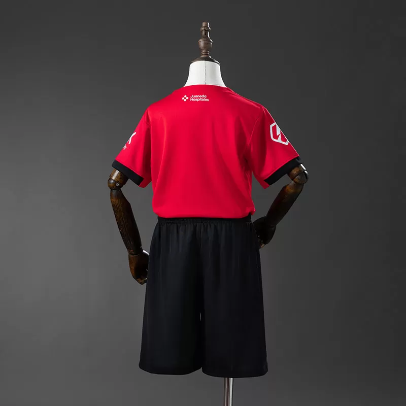 Noul Set fotbal copii RCD Mallorca 2025/26 acasă – tricou + pantaloni scurți aduce spiritul pasiunii spaniole direct pe teren. Inspirat de tradiția culorilor roșu și negru ale clubului, acest echipament de fotbal pentru copii combină un design modern cu o notă clasică, ideal pentru micii suporteri ai echipei RCD Mallorca.