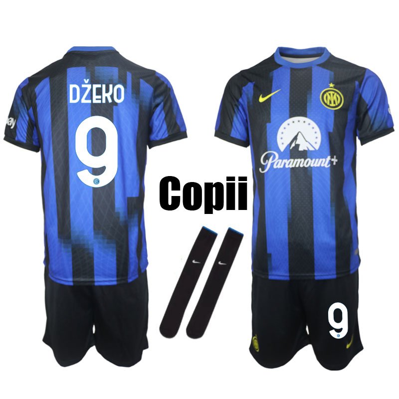 Inter Milan 2023-24 Tricou Acasa Džeko #9 Copii Kit Albastru Negru